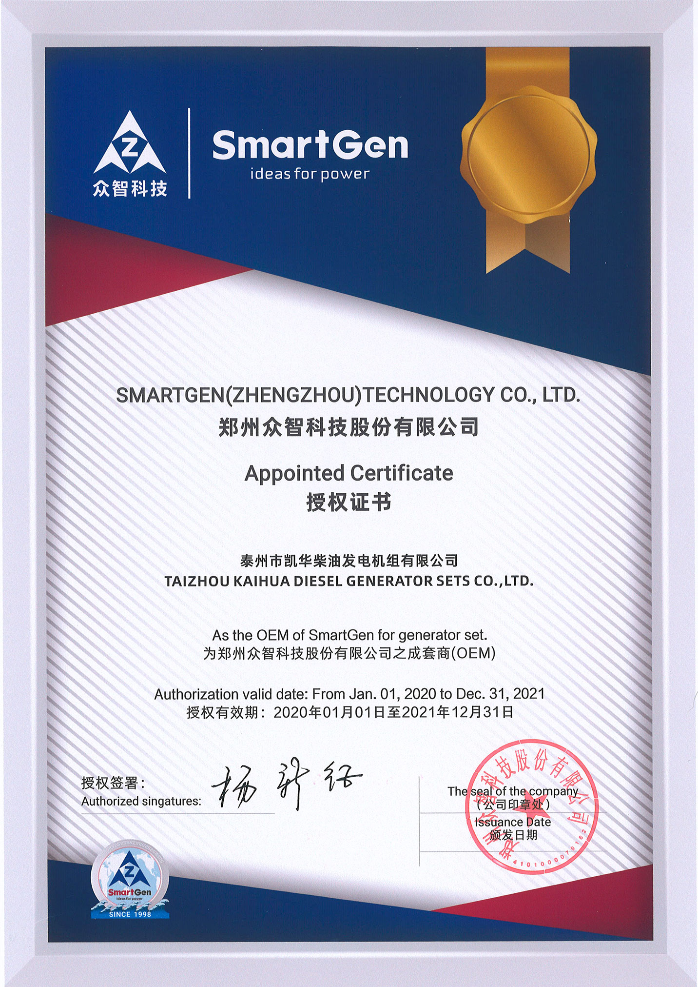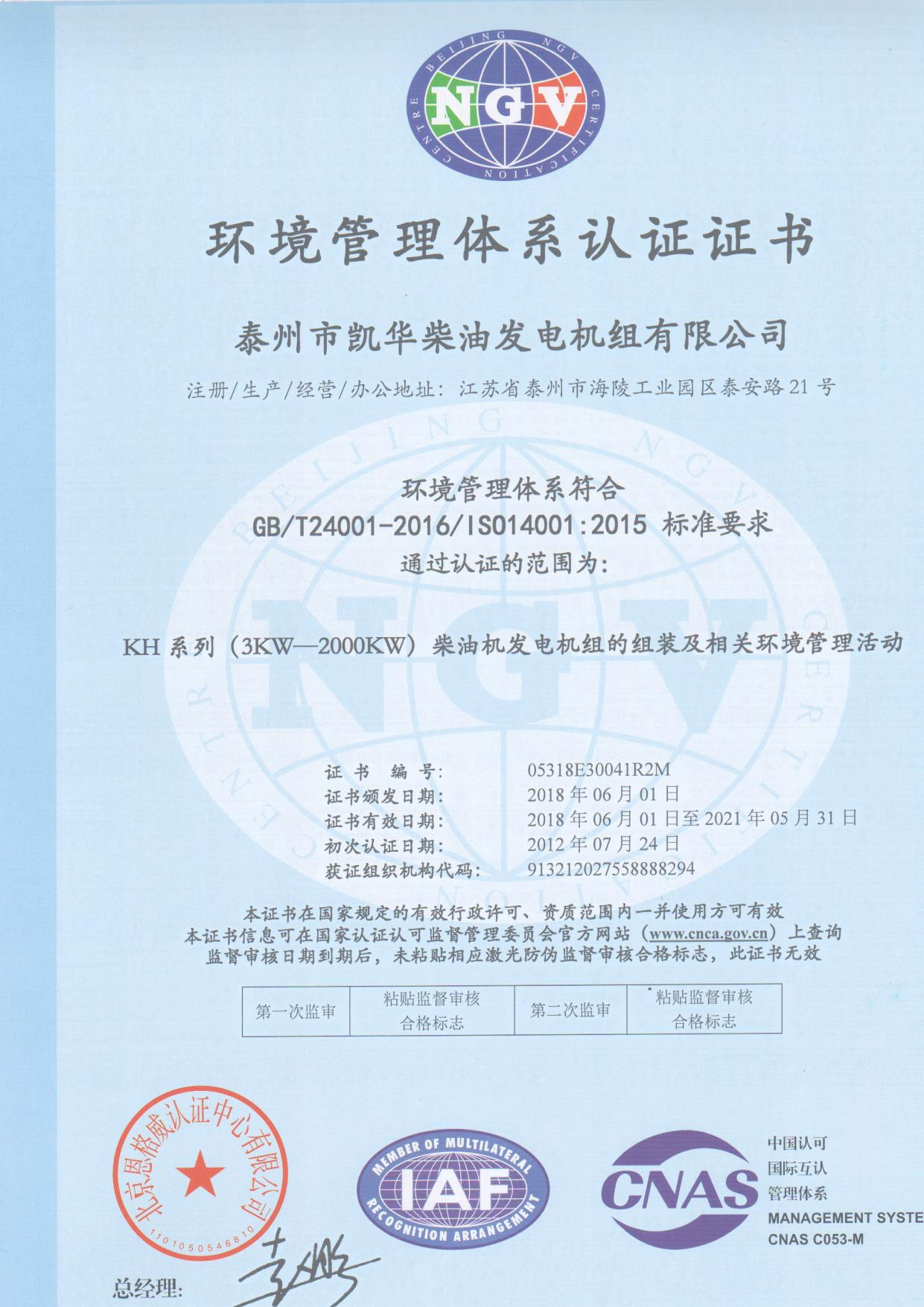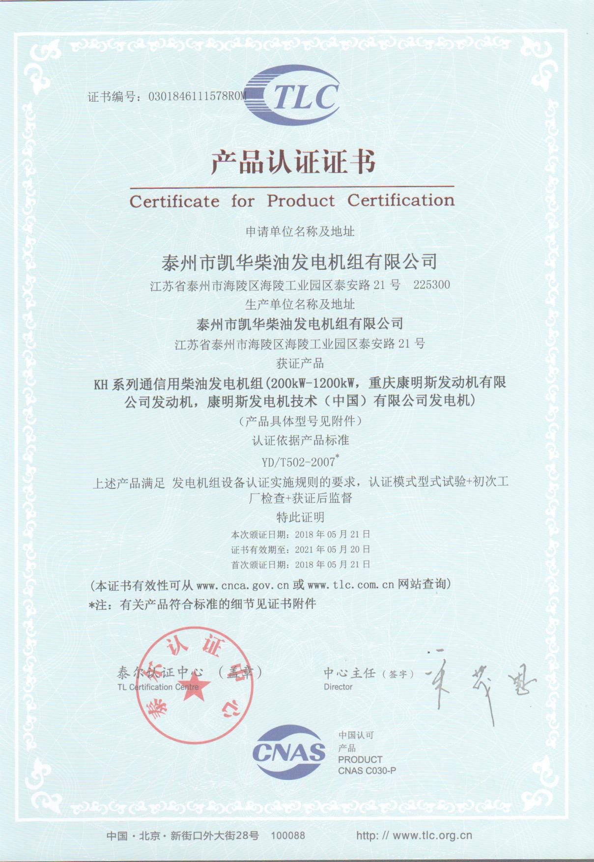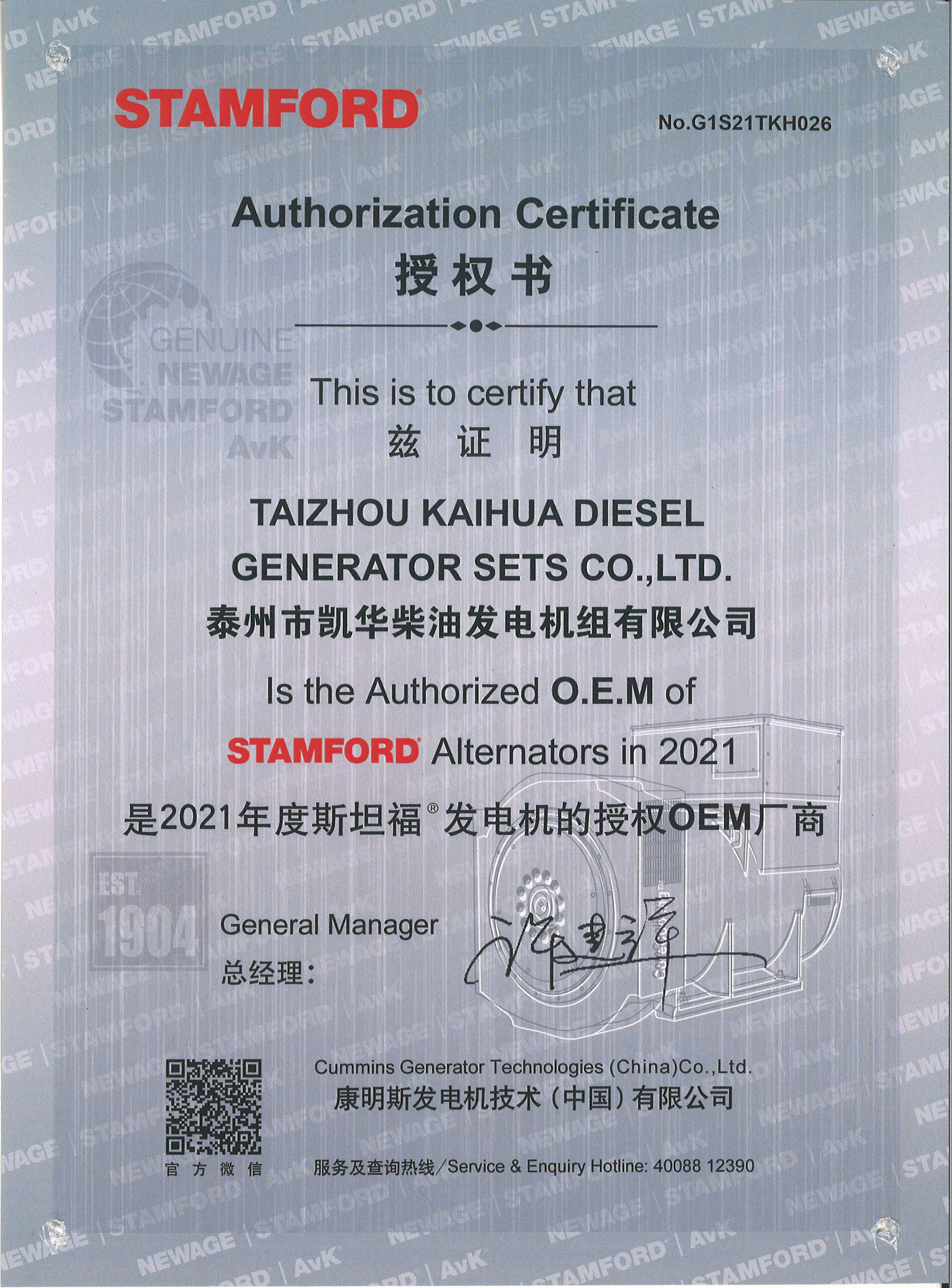 發(fā)電機(jī)組廠家凱華公司已先后通過(guò)ISO9001質(zhì)量認(rèn)證、泰爾認(rèn)證、ISO14001-2001環(huán)境管理體系認(rèn)證、GB/T28001-2001職業(yè)健康安全管理體系認(rèn)證,歐盟CE認(rèn)證、SGS認(rèn)證等。